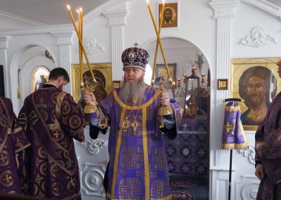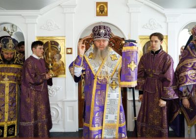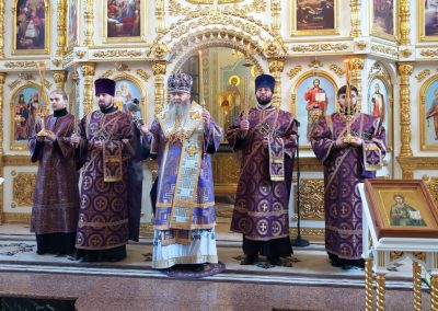 Накануне праздника, владыка совершил полиелейное богослужение в Петро-Павловском кафедральном соборе.