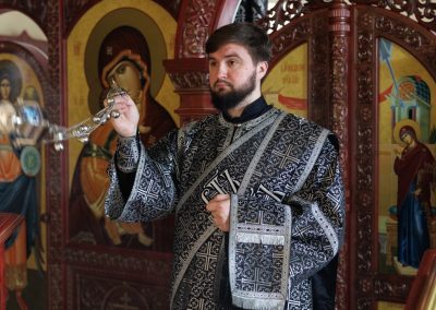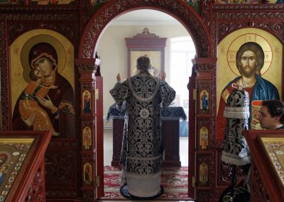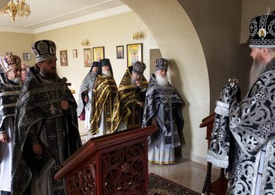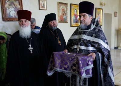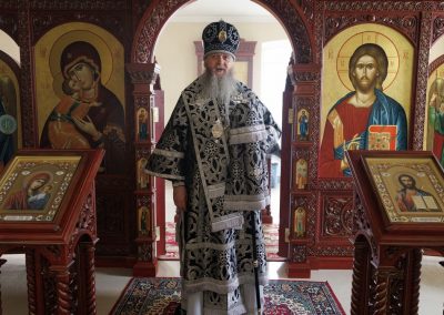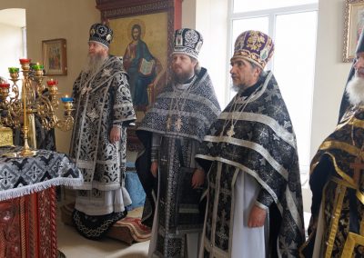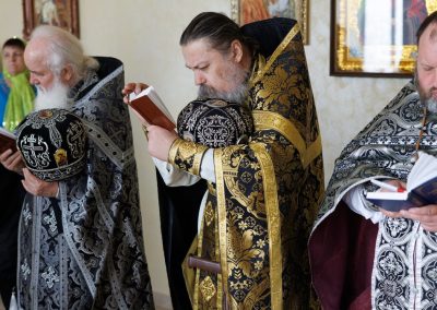 За Литургией Его Высокопреосвященству сослужил секретарь Епархии прот. Андрей Зозуля, благочинный Марковского округа прот. Григорий Акименко, благочинный Меловского округа прот. Игорь Захаркин, а также духовенство благочиний.