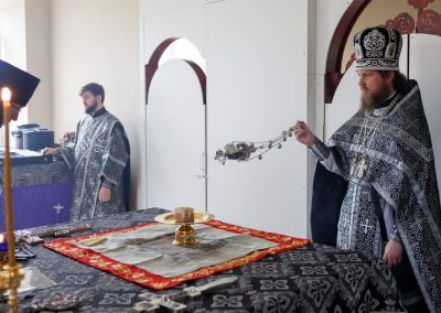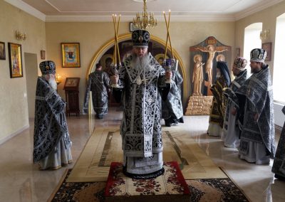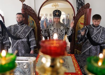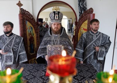 По завершении богослужения, владыка Пантелеимон поблагодарил паству за соборную молитву, пожелал достойно завершить Святую Четыредесятницу и призвал на всех Божие благословение.