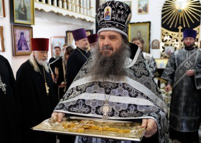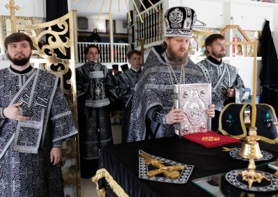 По завершении богослужения, владыка Пантелеимон поблагодарил паству за соборную молитву, поздравил с окончанием Святой Четыредесятницы и призвал на всех Божие благословение.