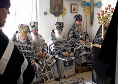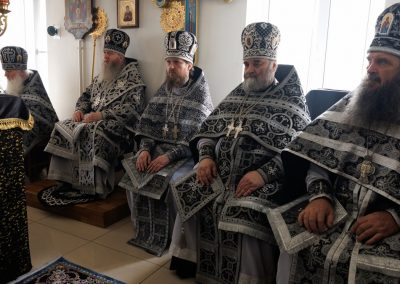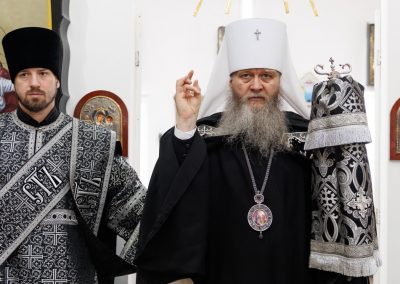 За Божественной литургией Его Высокопреосвященству сослужил секретарь Епархии прот. Андрей Зозуля, благочинный второго городского округа архим. Тихон (Ильгов), настоятель храма архим. Вениамин (Анучкин), а также духовенство благочиния.