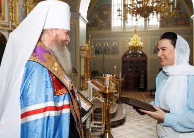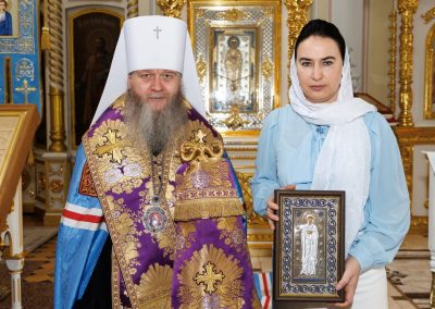 Вручив образ Пресвятой Богородицы, архипастырь пожелал, чтобы молитвами Царицы Небесной, каждый новый день, наполненный заботами преодолевался с новыми силами, вдохновением и мужеством.