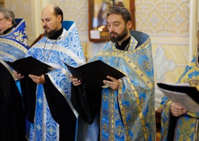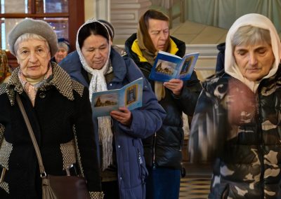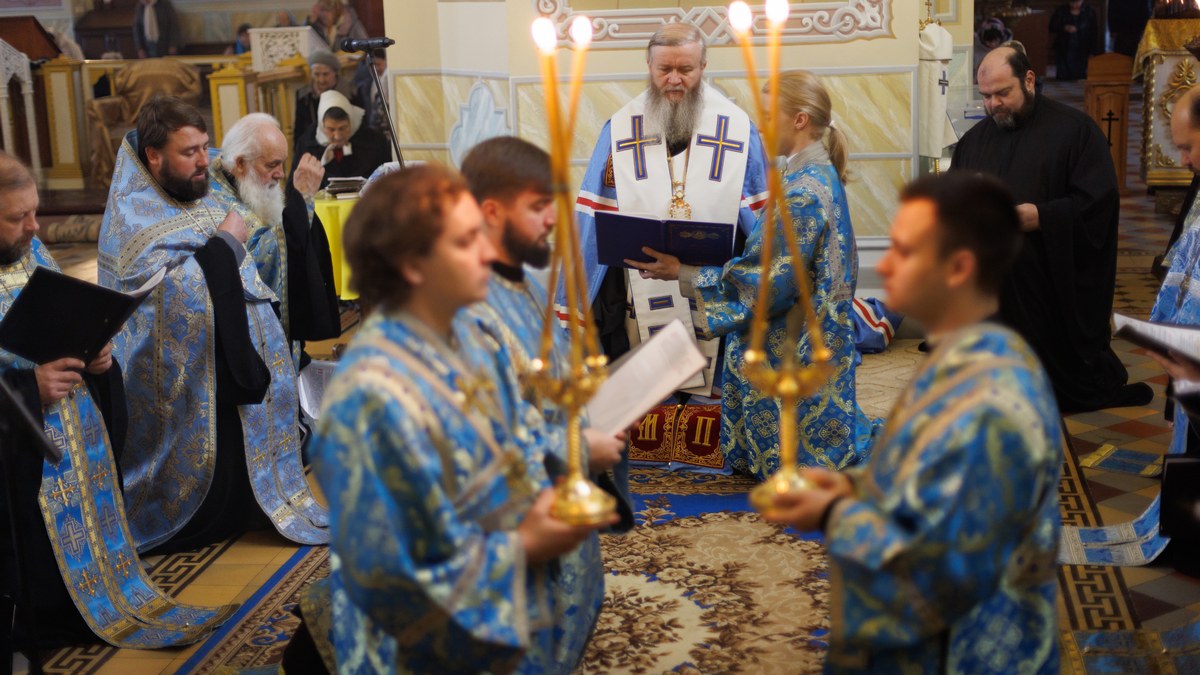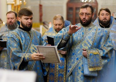 Затем, седмичный священник совершил Божественную литургию в Покровском приделе кафедрального собора.