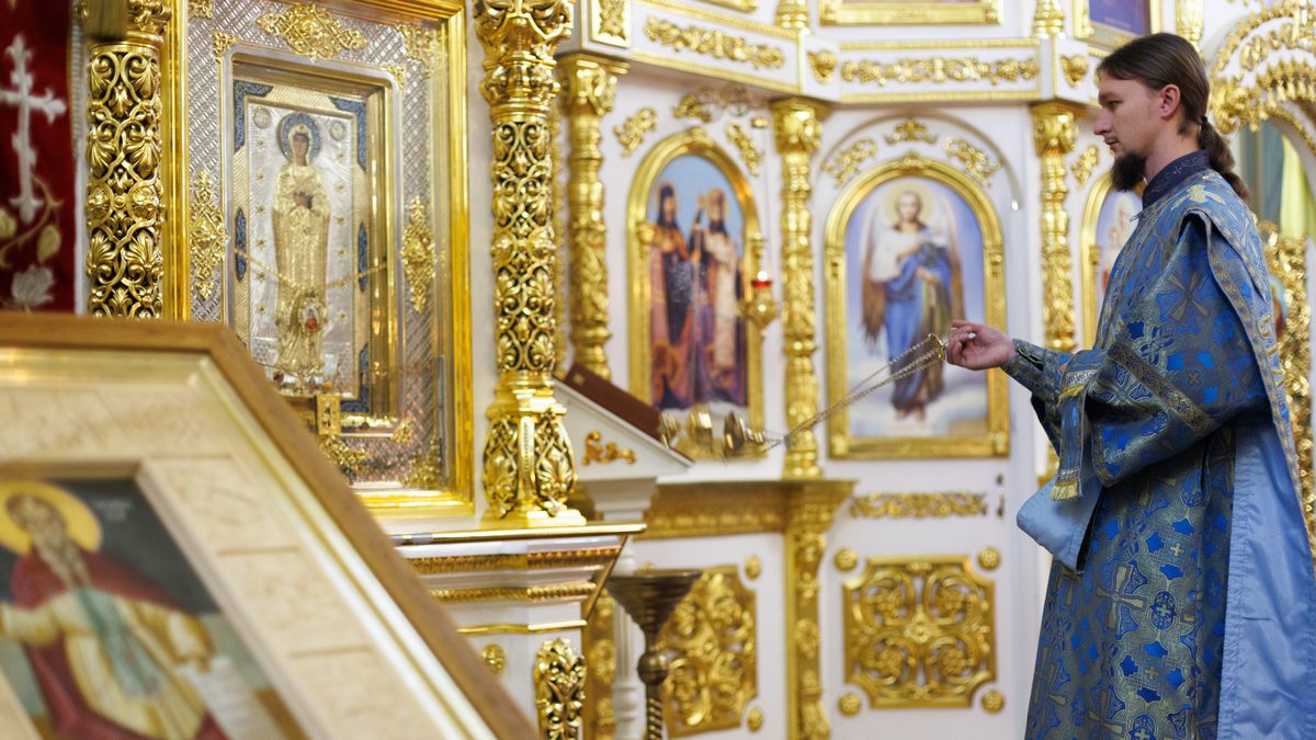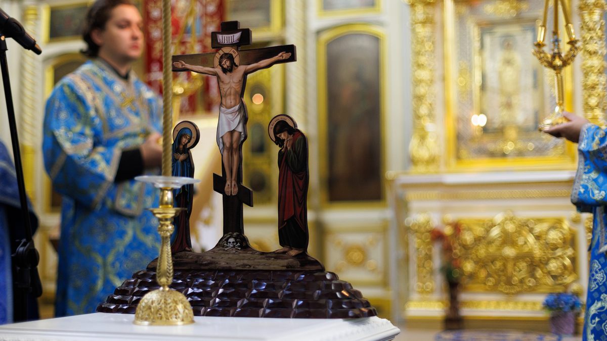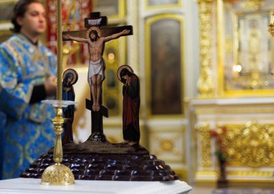 Затем, седмичный священник совершил Божественную литургию в Покровском приделе кафедрального собора.