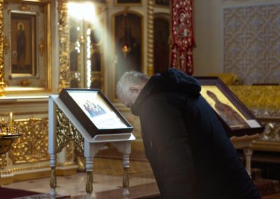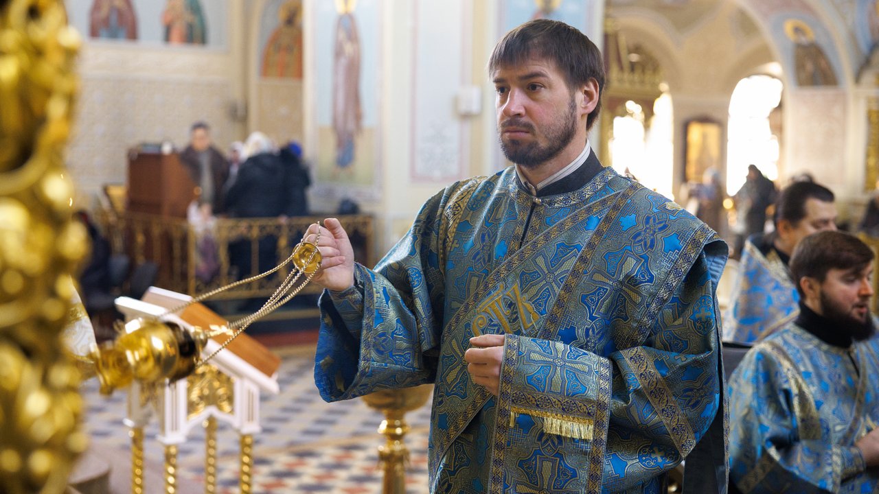 Затем, седмичный священник совершил Божественную литургию в Покровском приделе кафедрального собора.