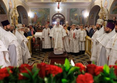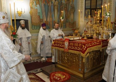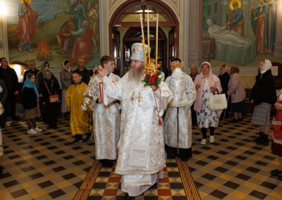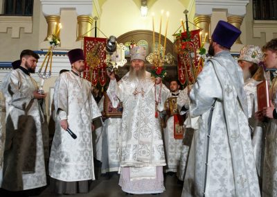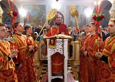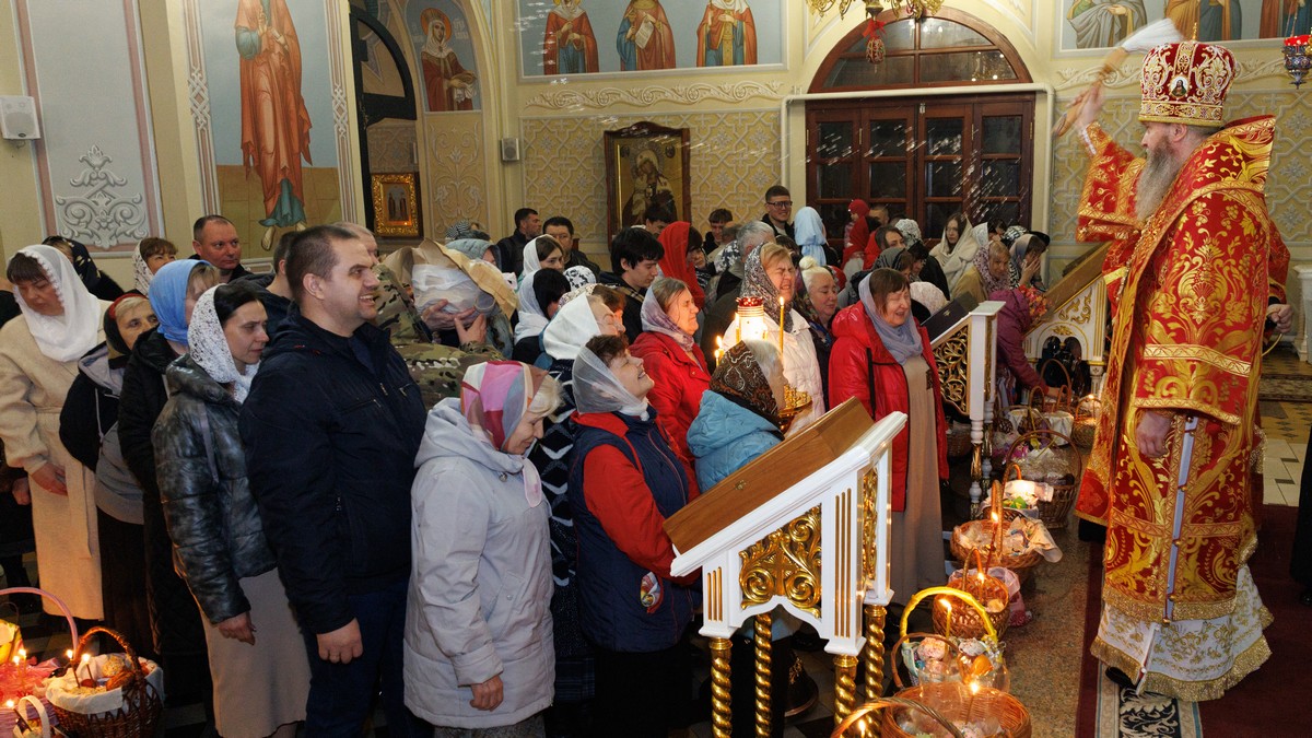 Также, за богослужением были прочитаны Пасхальные послания Святейшего Кирилла Патриарха Московского и всея Руси, и Высокопреосвященнейшего митрополита Пантелеимона.