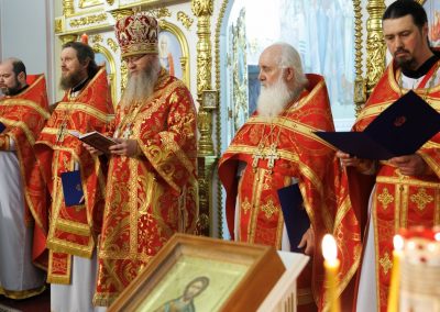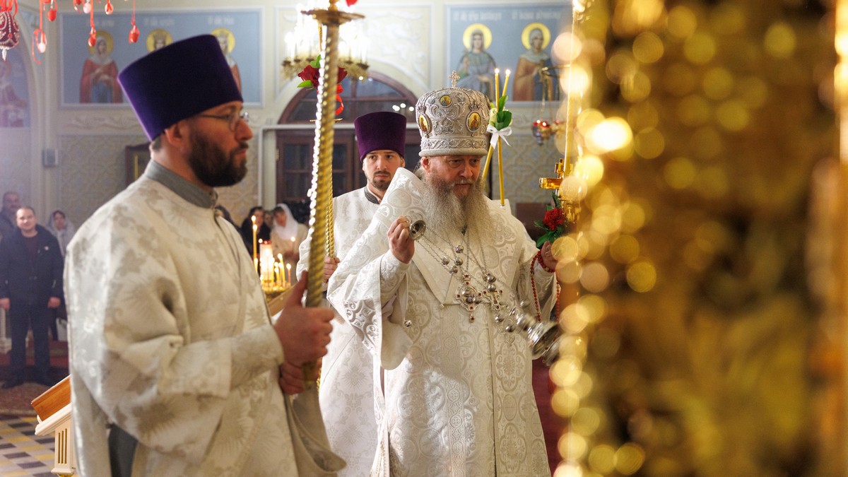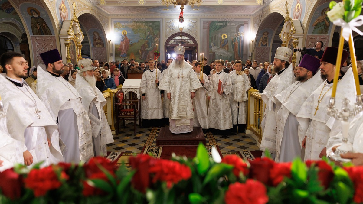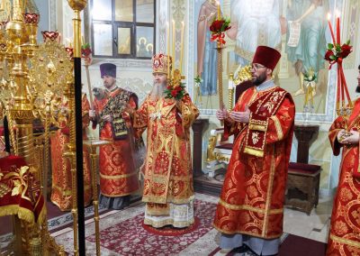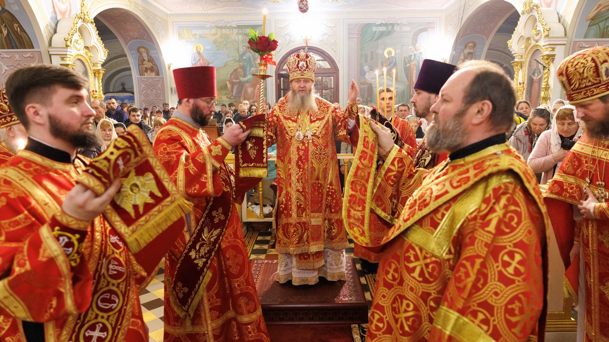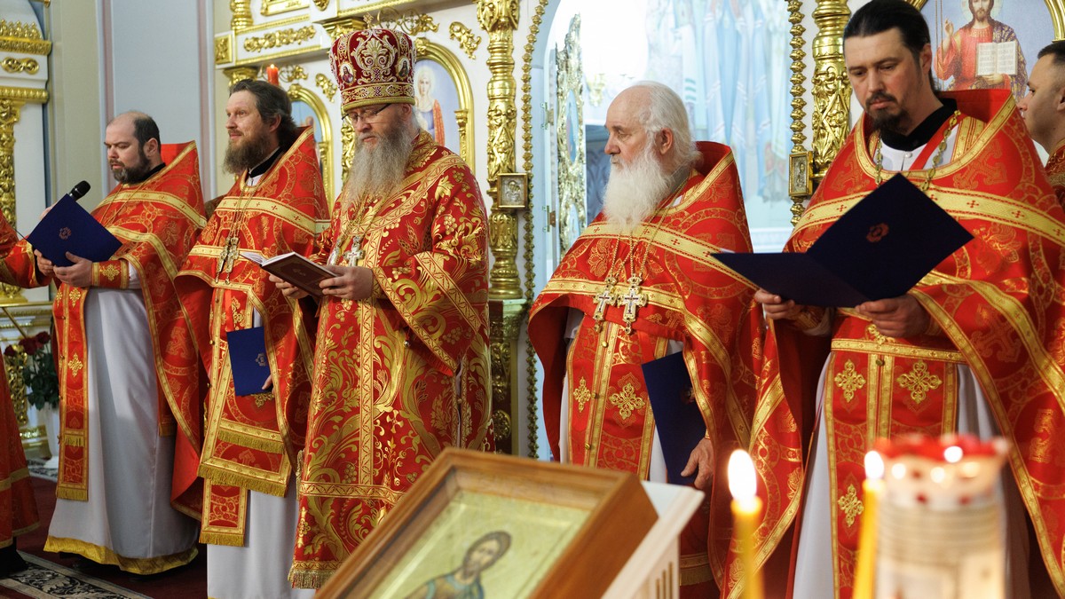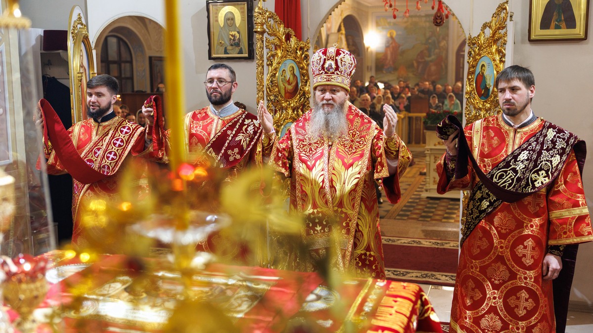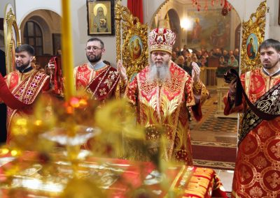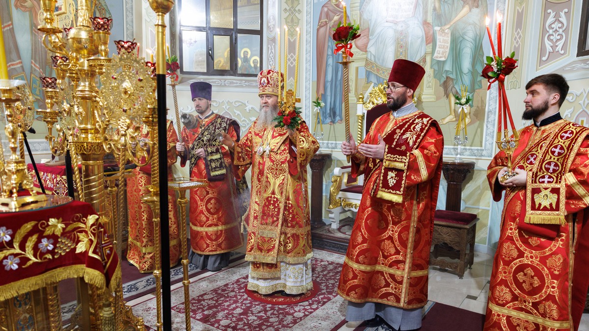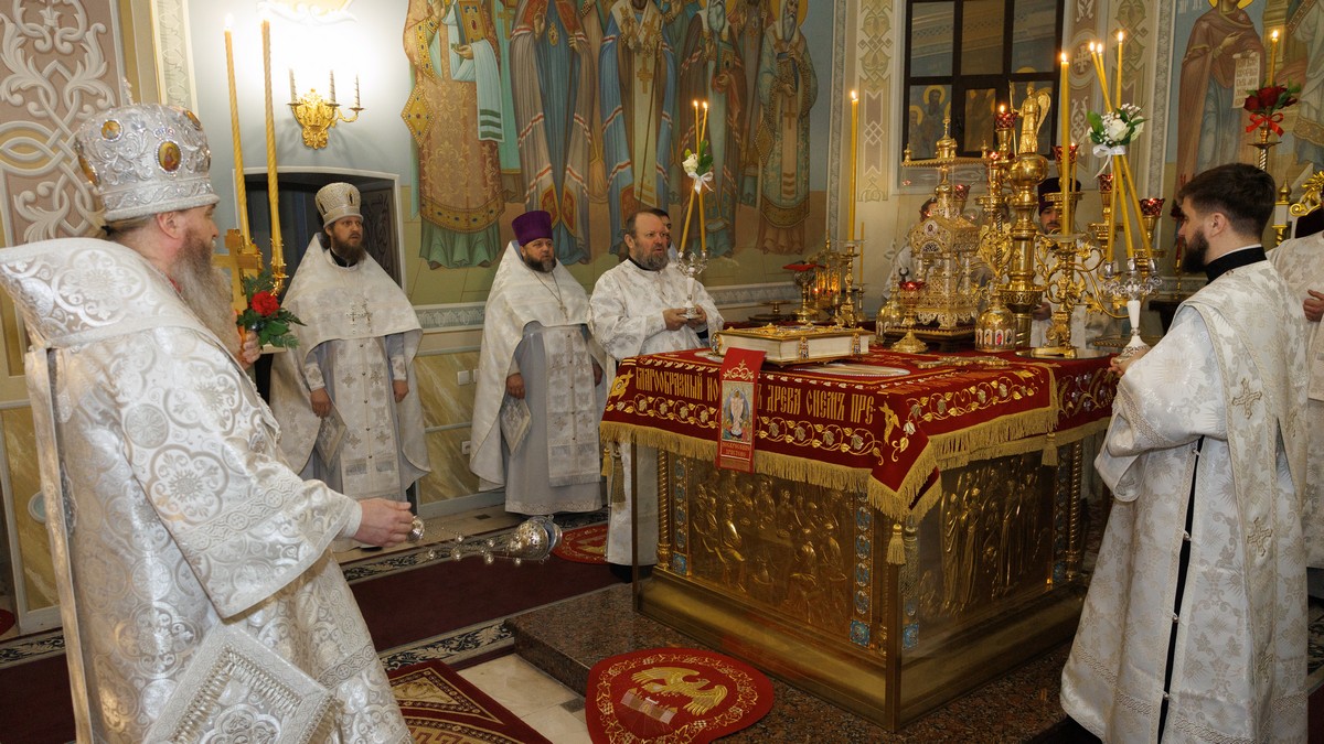 За Литургией Его Высокопреосвященству сослужило духовенство кафедрального собора.