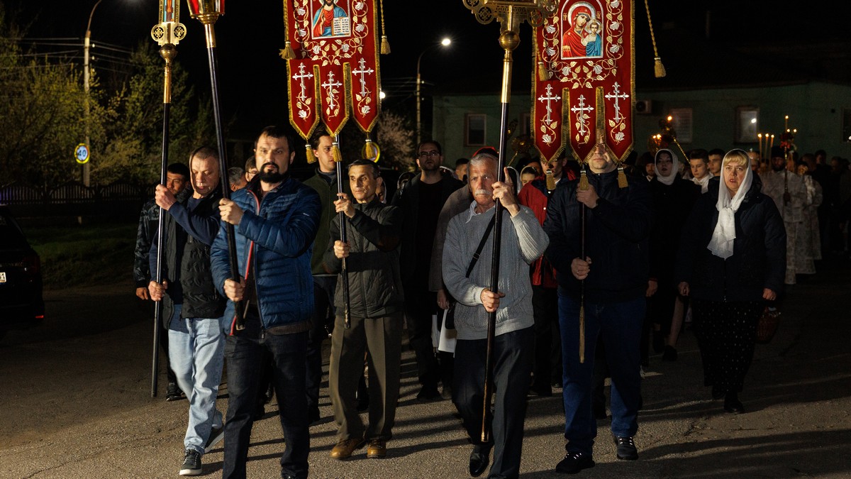 В ночь с 11 на 12-е апреля 2026 года, Высокопреосвященнейший Пантелеимон, митрополит Луганский и Алчевский, совершил Полунощницу, Крестный ход, Пасхальную заутреню и Божественную литургию свт. Иоанна Златоуста в Петро-Павловском кафедральном соборе.