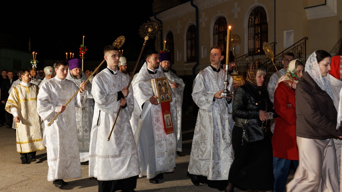 Под пение стихиры «Воскресение Твое, Христе Спасе» начался крестный ход вокруг кафедрального собора.