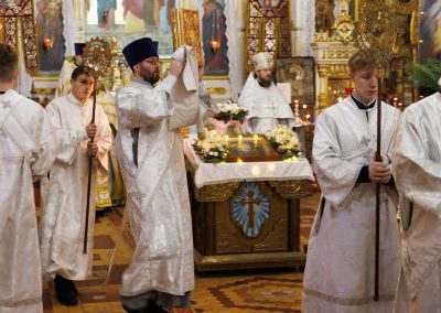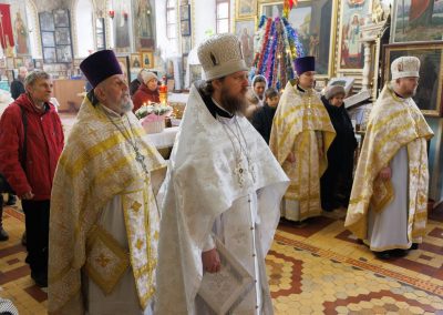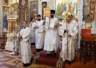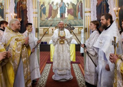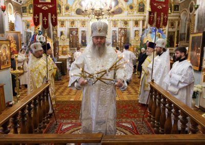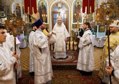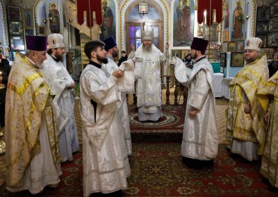 Во время богослужения Его Высокопреосвященству сослужил секретарь Луганской и Алчевской Епархии протоиерей Андрей Зозуля, а также соборное духовенство, создавая атмосферу единения и духовной радости.