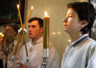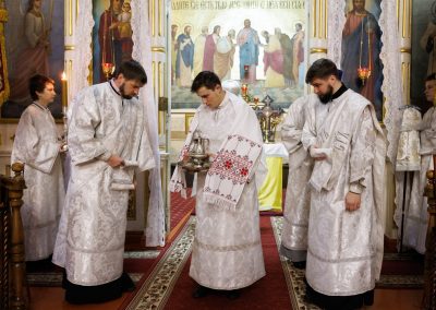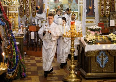 В завершение богослужения было совершено славление праздника Рождества Христова, которое напоминает о великом событии – воплощении Бога во плоти и даровании надежды всему человечеству. Славление выражалось пением тропаря и величанием праздника.