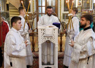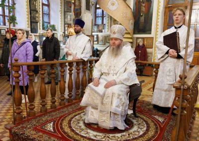 После сугубой ектении, владыка Пантелеимон вознес особую молитву о Святой Руси. Эта молитва, возносимая в период сложных испытаний для нашего народа, выражает надежду на мир, благополучие и духовное возрождение для всей Русской земли. В ней были вознесены прошения о защите веры, единстве народа и даровании мира.