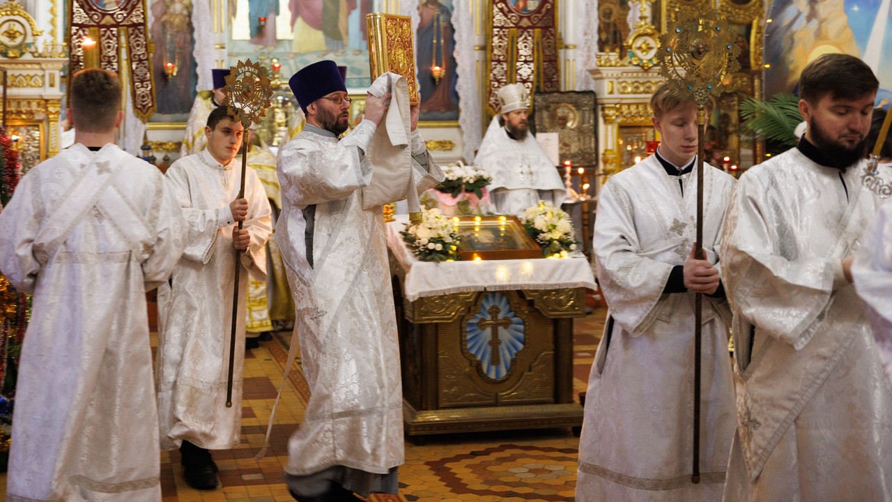 После богослужения владыка Пантелеимон обратился к духовенству и прихожанам собора с теплыми поздравлениями с рождественскими святками – периодом радости и духовного обновления, следующего за праздником Рождества Христова. Он подчеркнул важность сохранения духовных традиций и ценностей в этот светлый период.