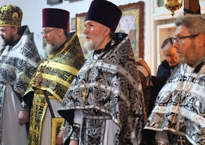 За Литургией Его Высокопреосвященству сослужил духовник Епархии прот. Владимир Соловей, благочинный Новоайдарского округа прот. Евгений Рогозинский, настоятель храма прот. Владимир Водолазский, а также духовенство округа.
