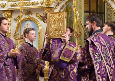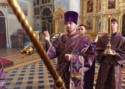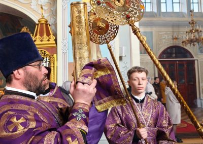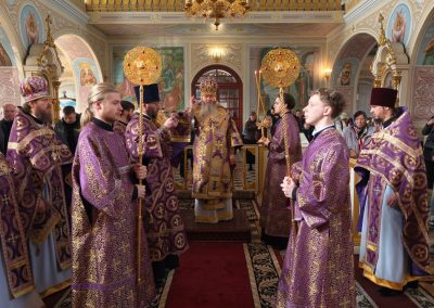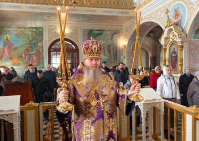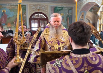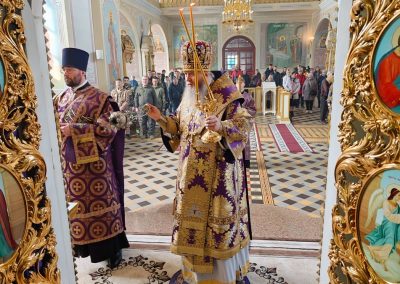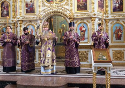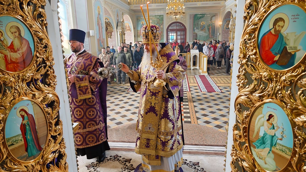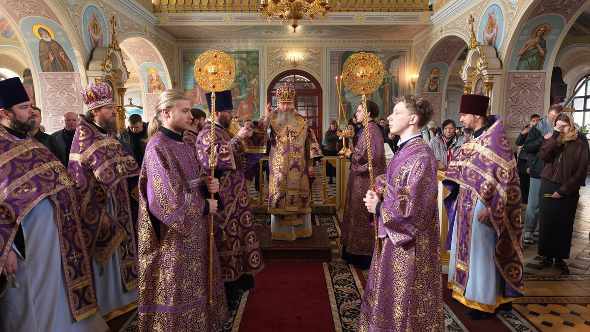 22 марта, в Неделю 4-ю Великого поста, день памяти преподобного Иоанна Лествичника, и 40 мучеников, в Севастийском озере мучившихся, Высокопреосвященнейший Пантелеимон, митрополит Луганский и Алчевский, совершил Божественную литургию свт. Василия Великого в Петро-Павловском кафедральном соборе