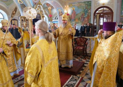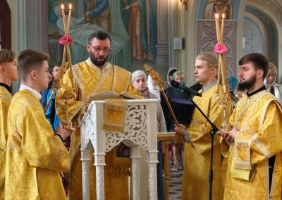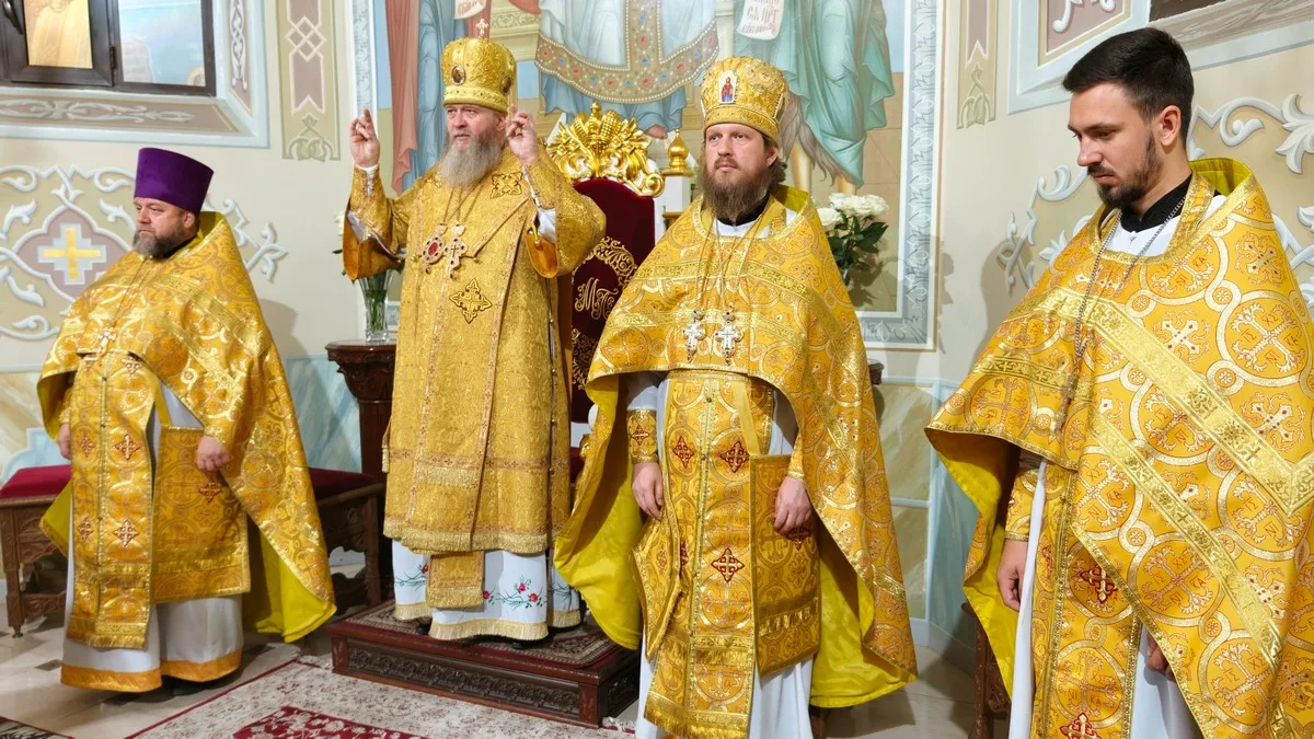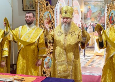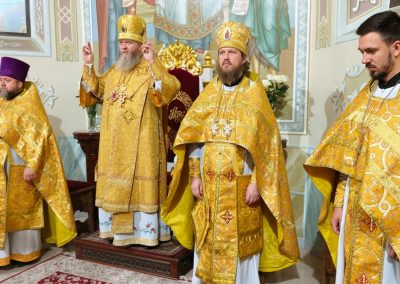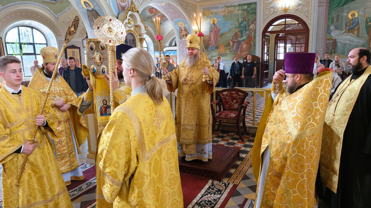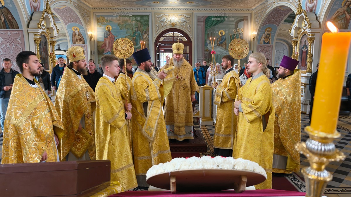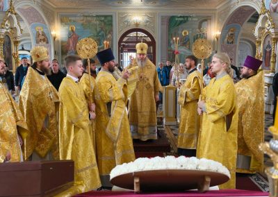 За Литургией Его Высокопреосвященству сослужило духовенство кафедрального собора.