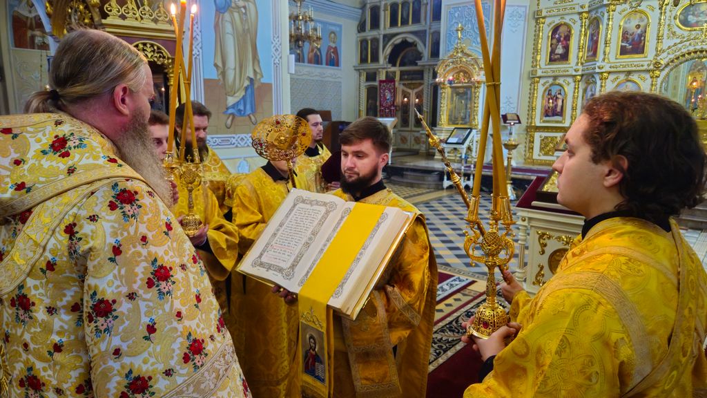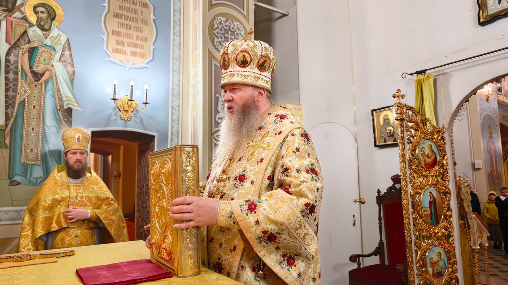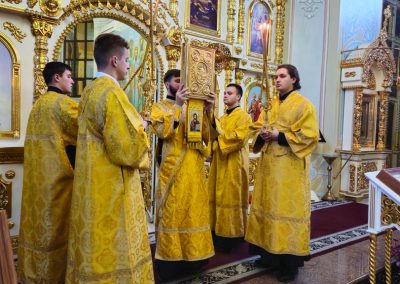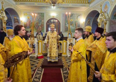Накануне воскресного дня владыка совершил в соборе Всенощное бдение.