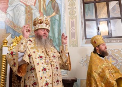 По окончании Литургии, владыка произнес проповедь, поблагодарил паству за соборную молитву и призвал на всех Божие благословение.