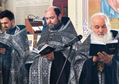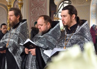 Вместе с архипастырем, в чтении акафиста Страстям Христовым принимали участие священнослужители кафедрального собора.
