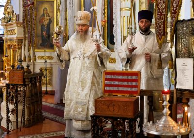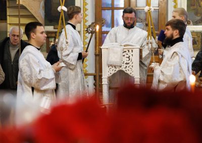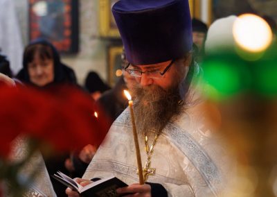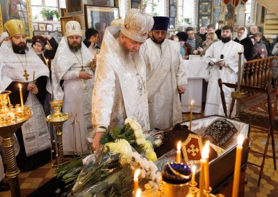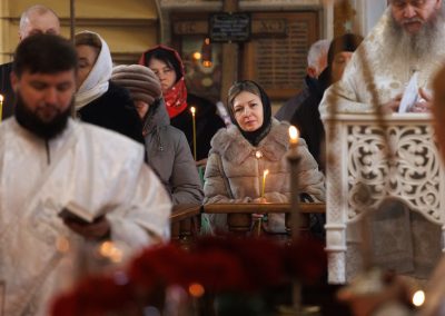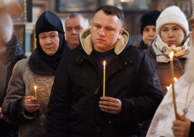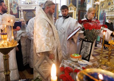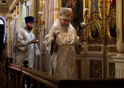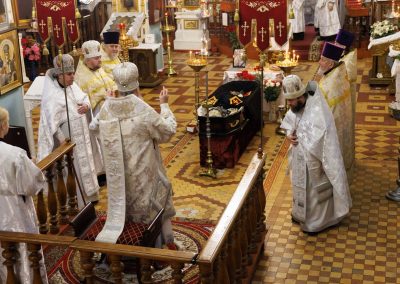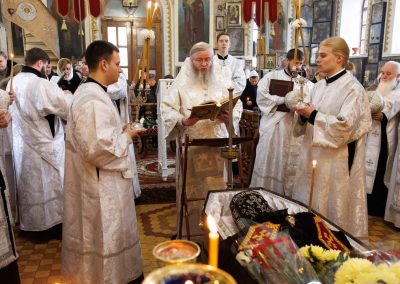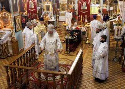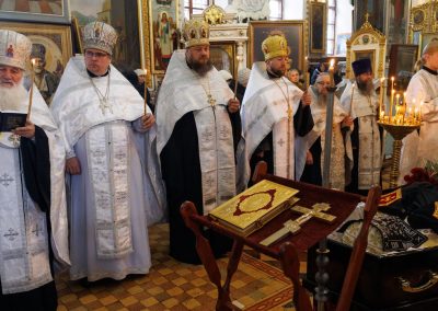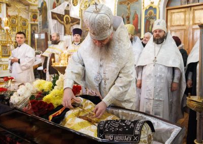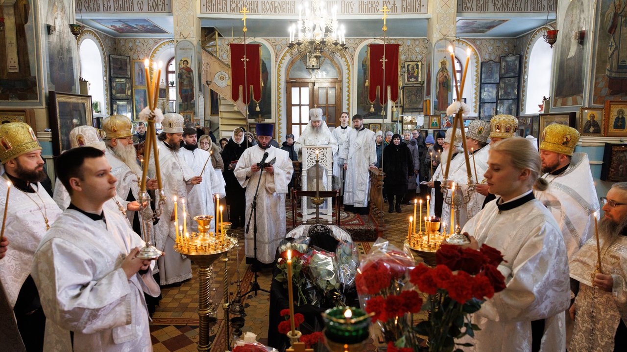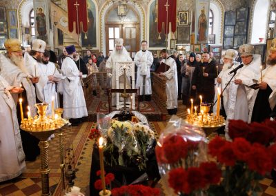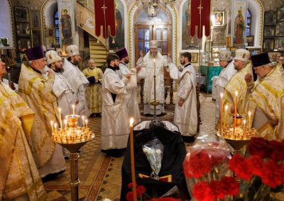 В течение Литургии возносились сугубые молитвы о новопреставленном архимандрите Пимене, прошения о прощении его грехов и о даровании ему блаженной вечной жизни в обителях небесных.