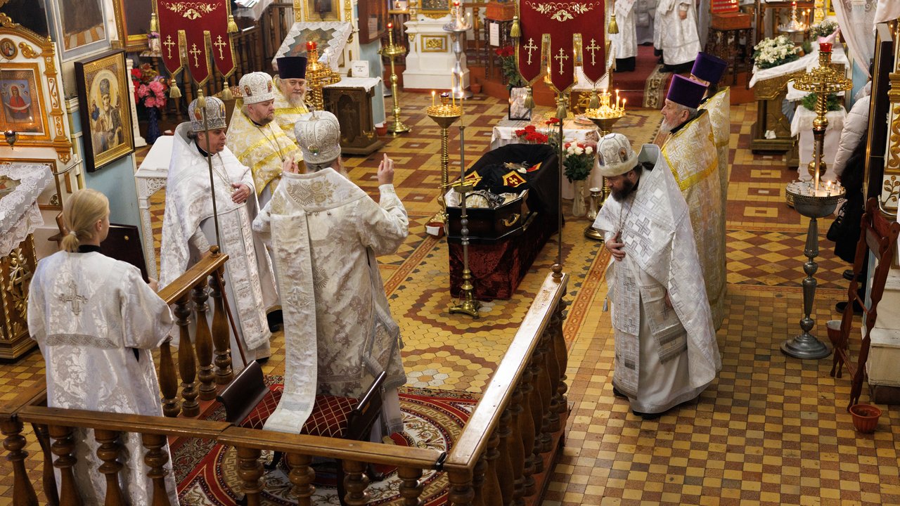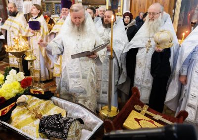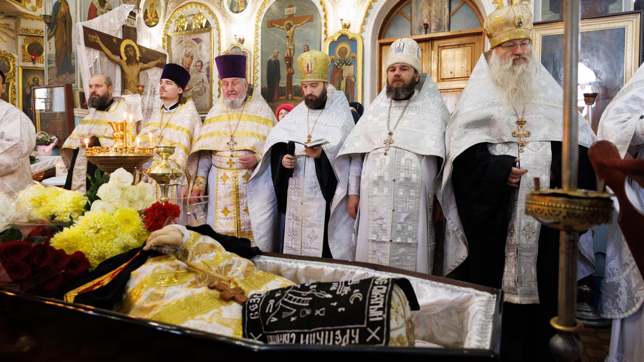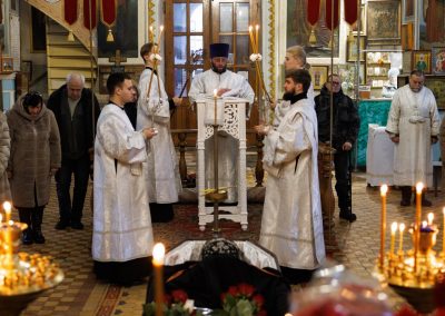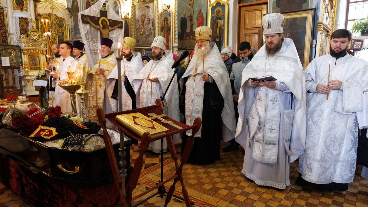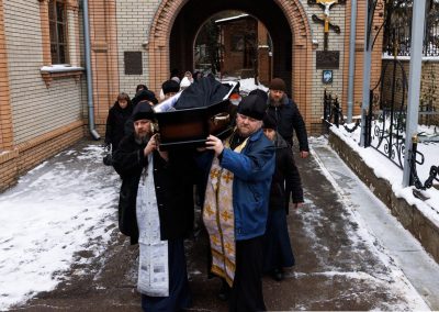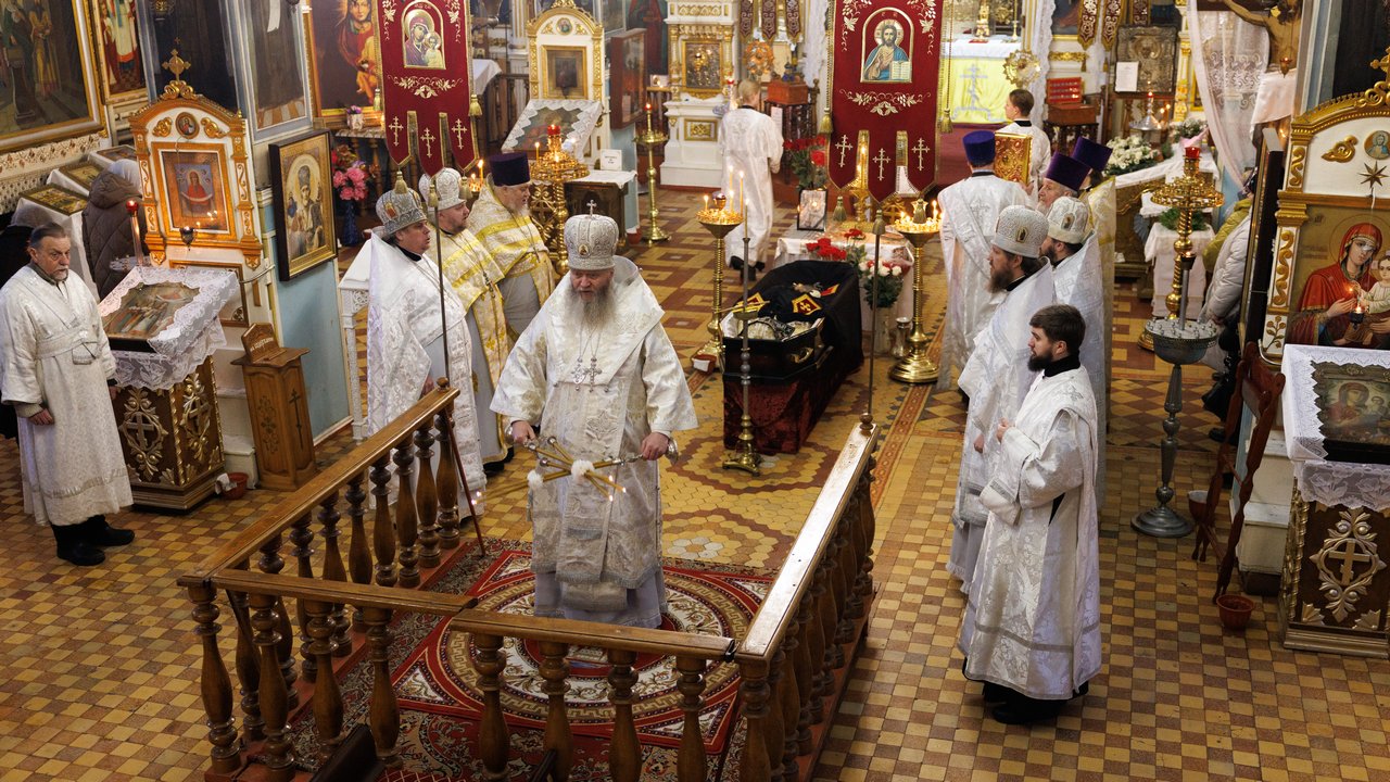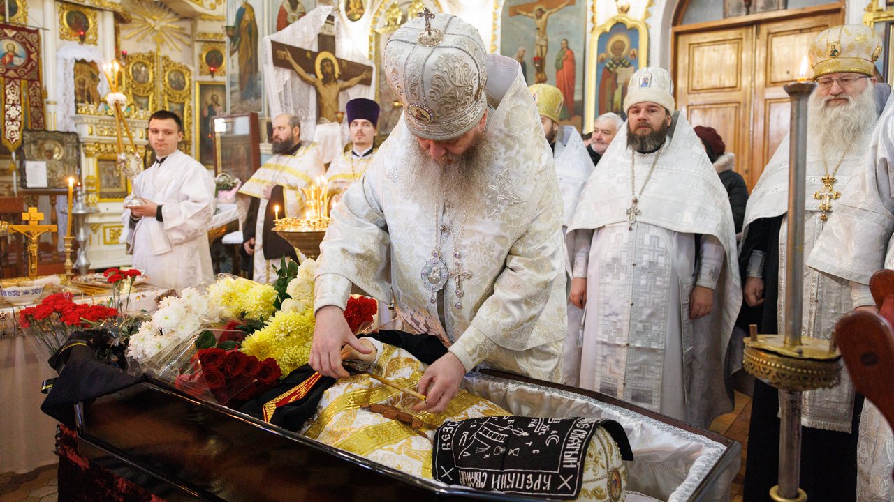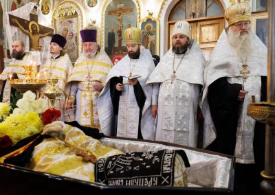 После чина отпевания владыка Пантелеимон выразил искренние слова соболезнования родным и близким почившего, и, следуя древней традиции, от лица усопшего трижды испросил прощения у всех присутствующих на заупокойном богослужении. Затем, в молитвенном молчании, гроб с телом отца провели в последний путь к месту упокоения.