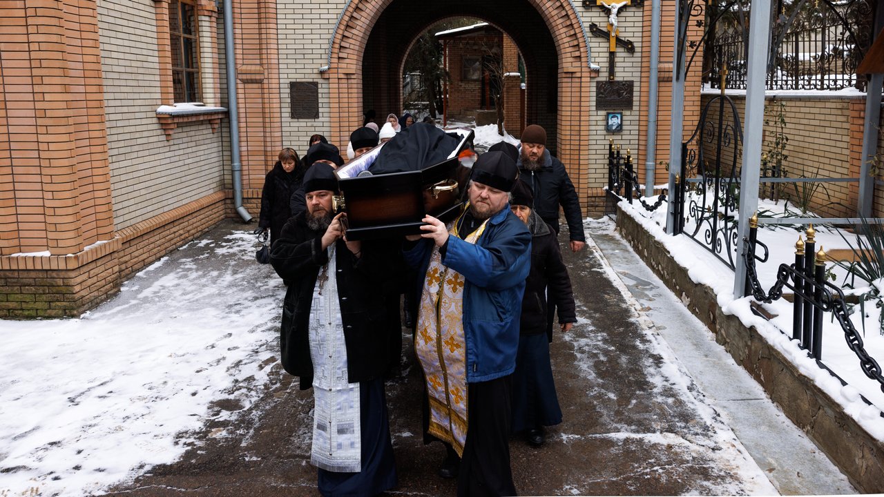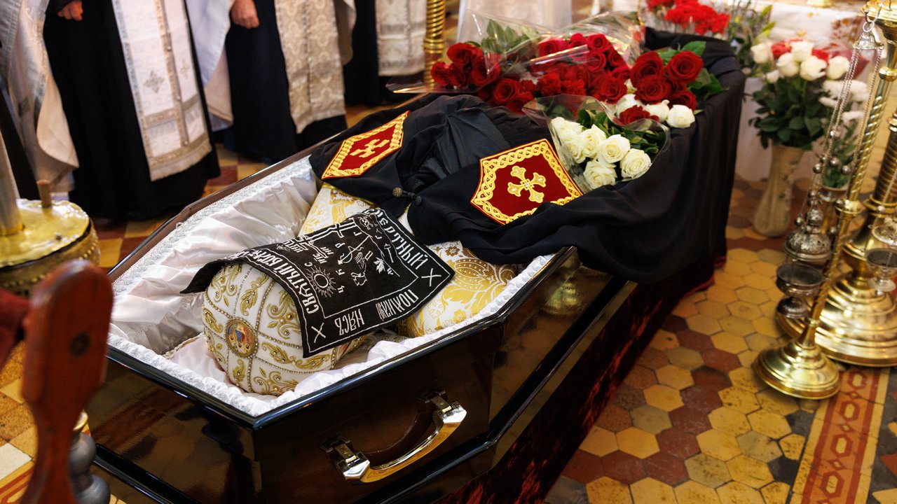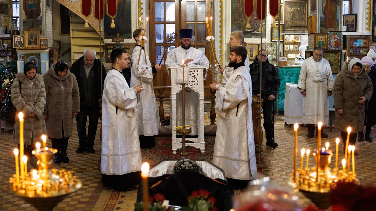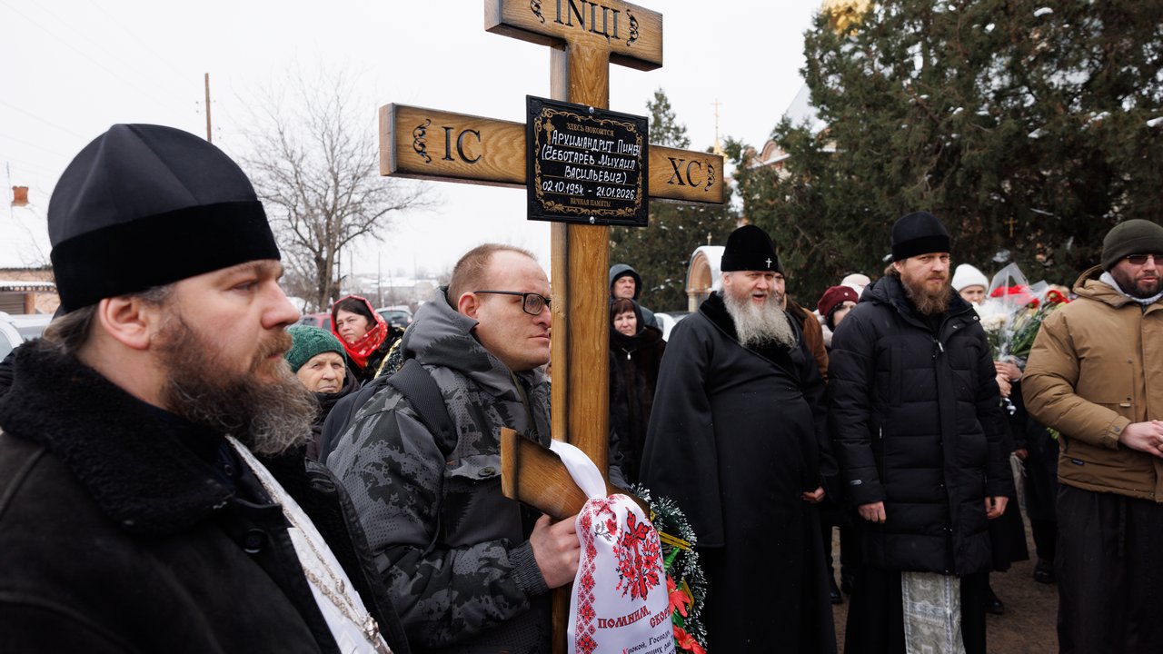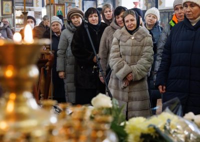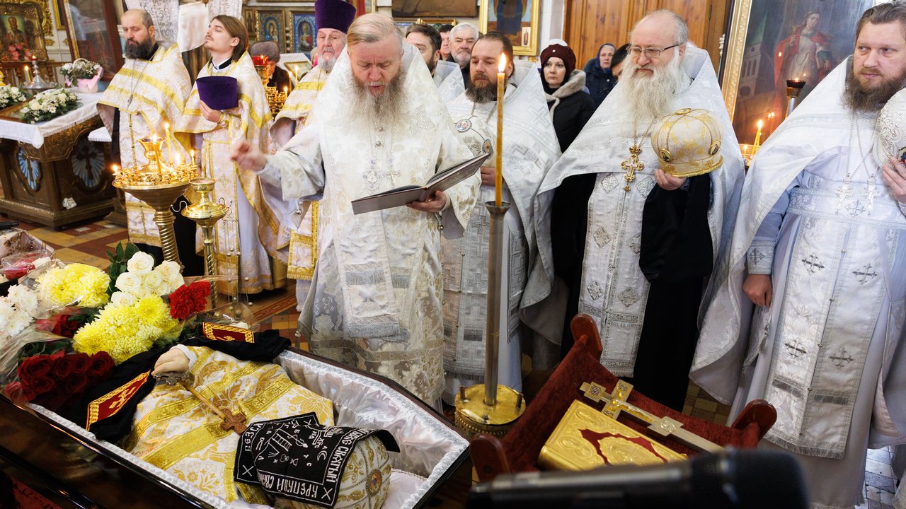 После чина отпевания владыка Пантелеимон выразил искренние слова соболезнования родным и близким почившего, и, следуя древней традиции, от лица усопшего трижды испросил прощения у всех присутствующих на заупокойном богослужении. Затем, в молитвенном молчании, гроб с телом отца провели в последний путь к месту упокоения.