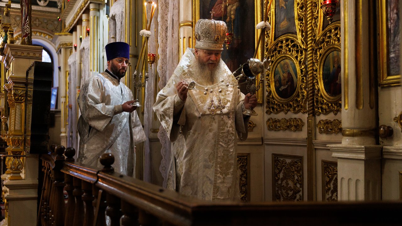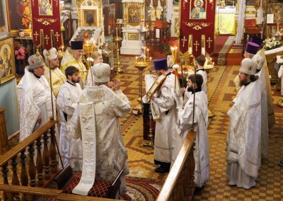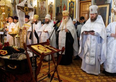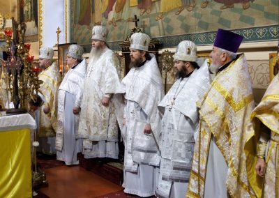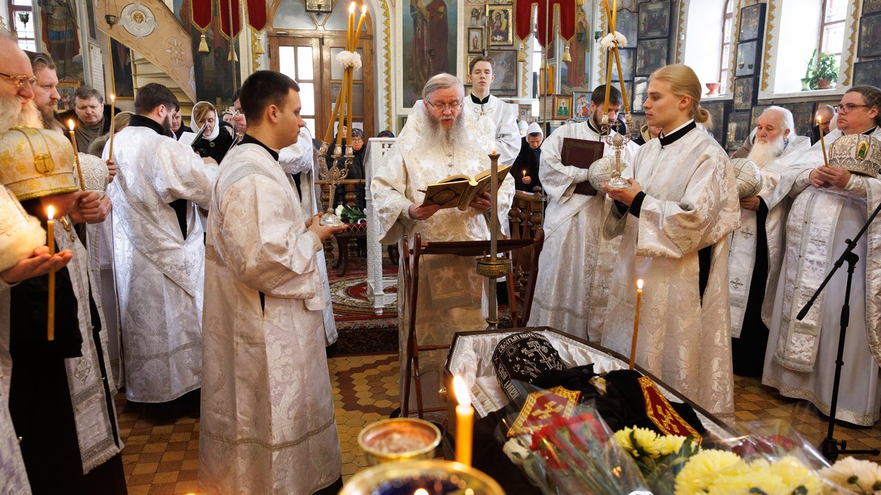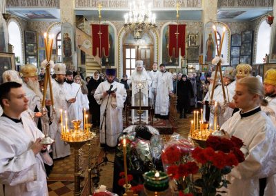 За богослужением Его Высокопреосвященству сослужили секретарь Епархии протоиерей Андрей Зозуля, благочинный центрального округа протоиерей Александр Пономарев, а также духовенство благочиния. Собор был полон молящимися, среди которых были прихожане храма, родные и близкие, почившего архимандрита Пимена, пришедшие испросить у Господа упокоения его души.