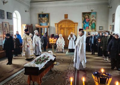 5 февраля, Высокопреосвященнейший Пантелеимон, митрополит Луганский и Алчевский, совершил заупокойную Божественную литургию по новопреставленному протоиерею Сергию Чупрову в Преображенском храме ст. Фащевка, где совершал свое служение почивший священнослужитель.