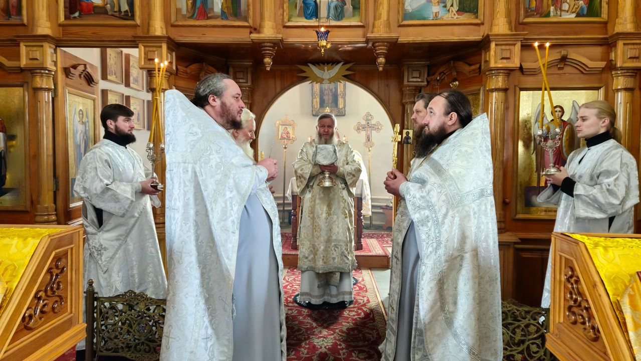 В течение Литургии возносились сугубые молитвы о новопреставленном архимандрите Пимене, прошения о прощении его грехов и о даровании ему блаженной вечной жизни в обителях небесных.