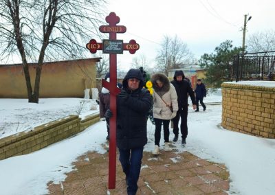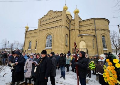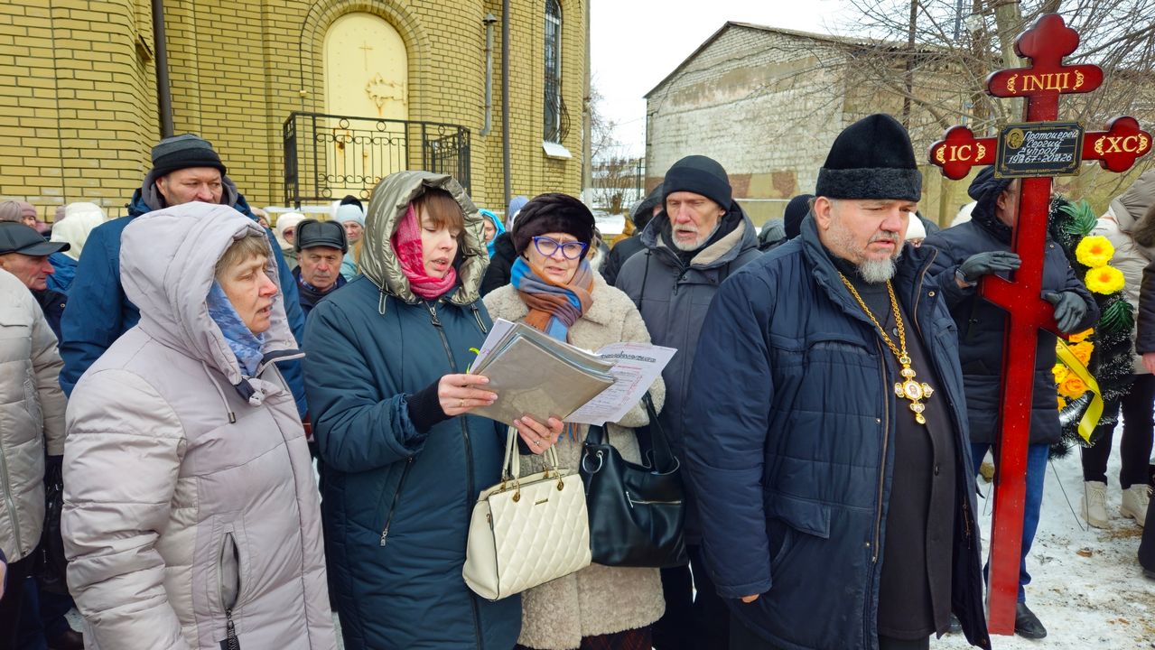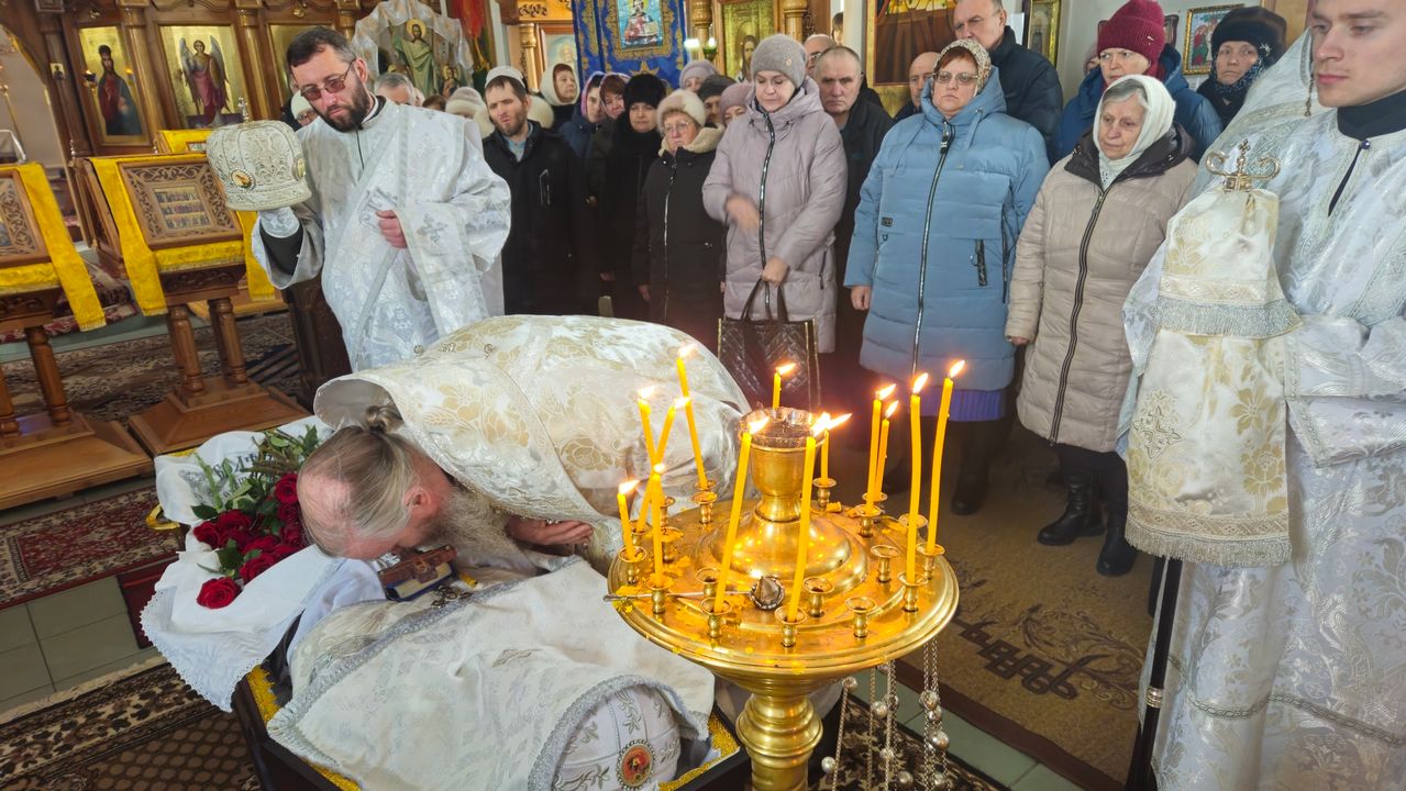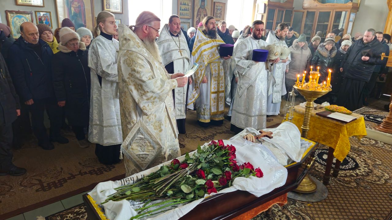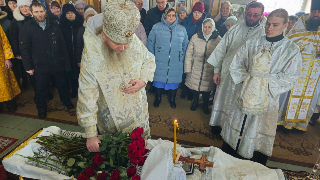 После чина отпевания владыка Пантелеимон выразил искренние слова соболезнования родным и близким почившего, и, следуя древней традиции, от лица усопшего трижды испросил прощения у всех присутствующих на заупокойном богослужении. Затем, в молитвенном молчании, гроб с телом отца провели в последний путь к месту упокоения на территории храма.