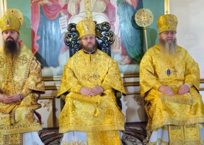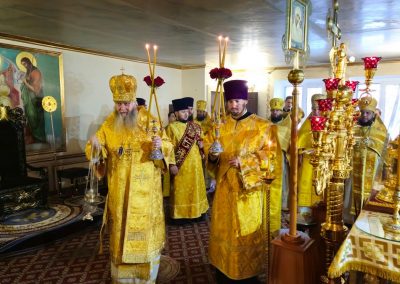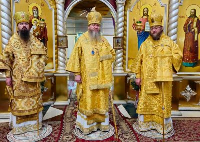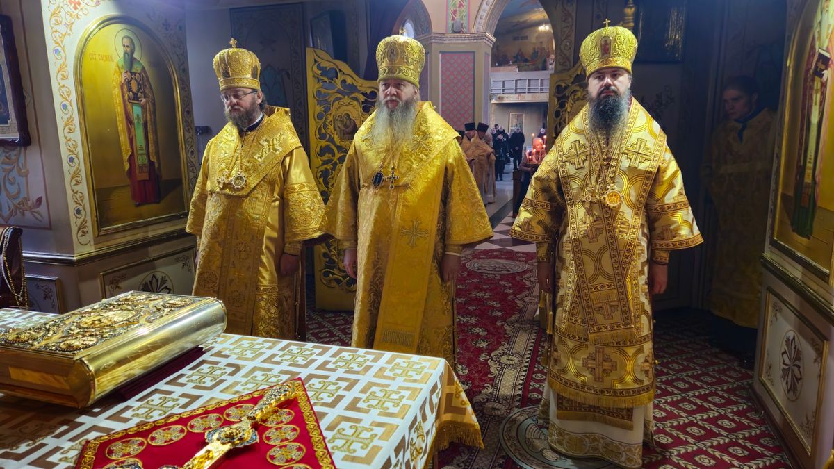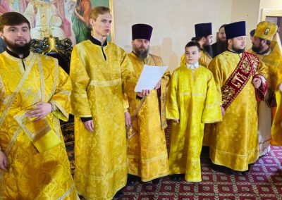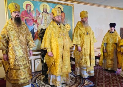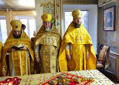 Божественную литургию совершили митрополит Луганский и Алчевский Пантелеимон, митрополит Северодонецкий и Старобельский Никодим и архиепископ Новопсковский Иринарх в сослужении духовенства.