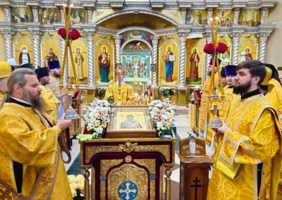 В завершении Литургии было совершено славление святителю Спиридону Тримифунтскому.