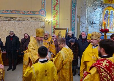 25 декабря, в день памяти святителя Спиридона, епископа Тримифунтского, Высокопреосвященнейший Пантелеимон, митрополит луганский и Алчевский, возглавил Божественную литургию в Христо-Рождественском кафедральном соборе г. Северодонецка, по случаю престольного праздника одного из пределов собора и 15-й годовщины епископской хиротонии митрополита Северодонецкого и Старобельского Никодима.