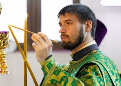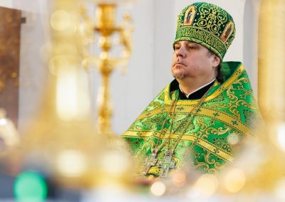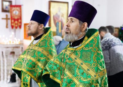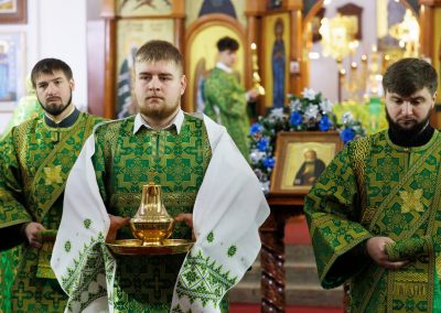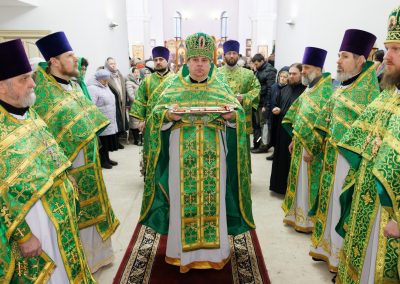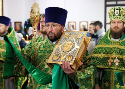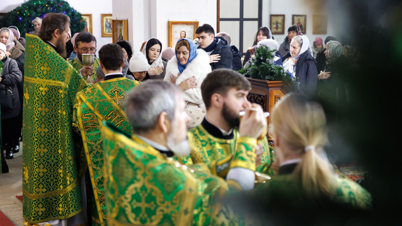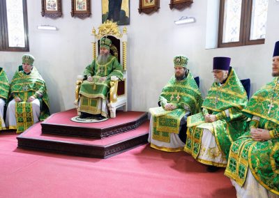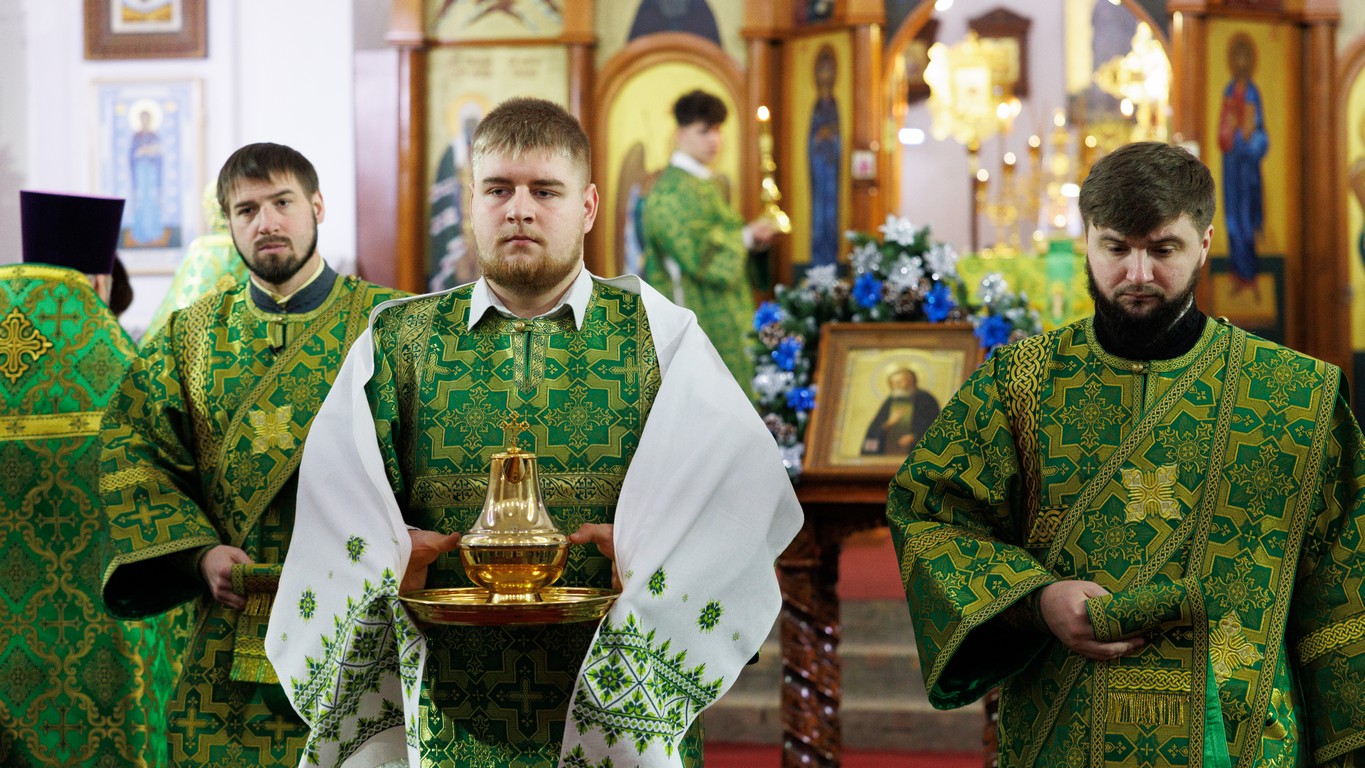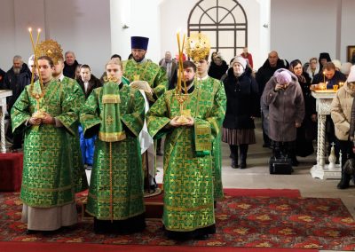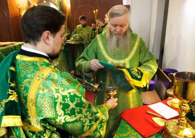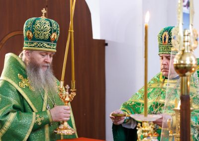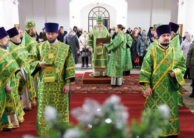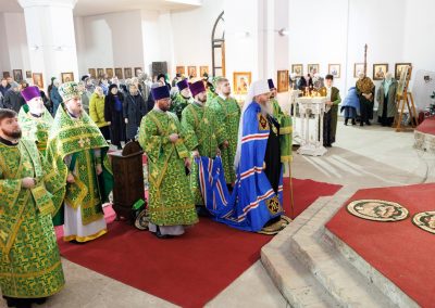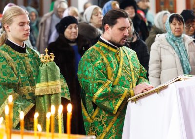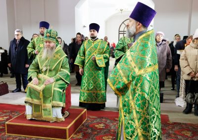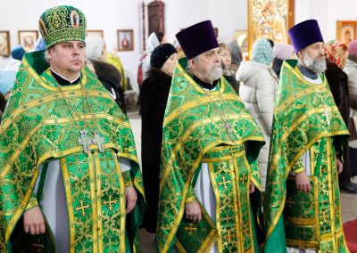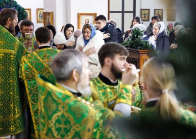 За богослужением Его Высокопреосвященству сослужил секретарь Епархии протоиерей Андрей Зозуля, настоятель храма и благочинный Центрального округа протоиерей Александр Пономарев, клирик Липецкой Епархии иерей Илия Азарин, несущий пастырское служение в госпитале «Витязь» города Луганска, а также приходские священнослужители. Соборность духовенства, их единение в молитве, торжественное пение, наполнили храм особой благодатной атмосферой.