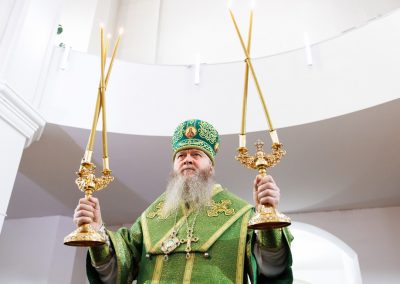 После сугубой ектении, владыка вознес молитву о Святой Руси, о наших защитниках, о тех, кто лишен крова и находится в изгнании, о голодающих, больных и страждущих.