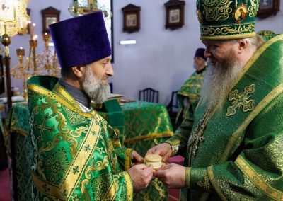 Обращаясь к настоятелю, владыка Пантелеимон выразил глубокую признательность за его усердные труды на благо прихода и всего благочиннического округа, вверенного ему в послушание, призвал всех прихожан возносить молитвы о своем духовном наставнике.