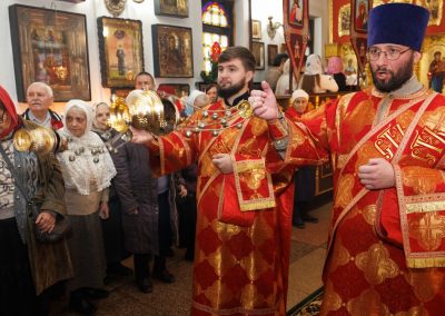 По окончании Литургии была вознесена молитва и совершено славление святому великомученику Димитрию Солунскому.