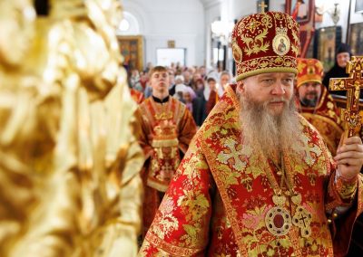 Затем, владыка обратился к молящимся с архипастырским словом, в котором отметил высоту христианского подвига и непоколебимое мужество ныне воспоминаемого святого.