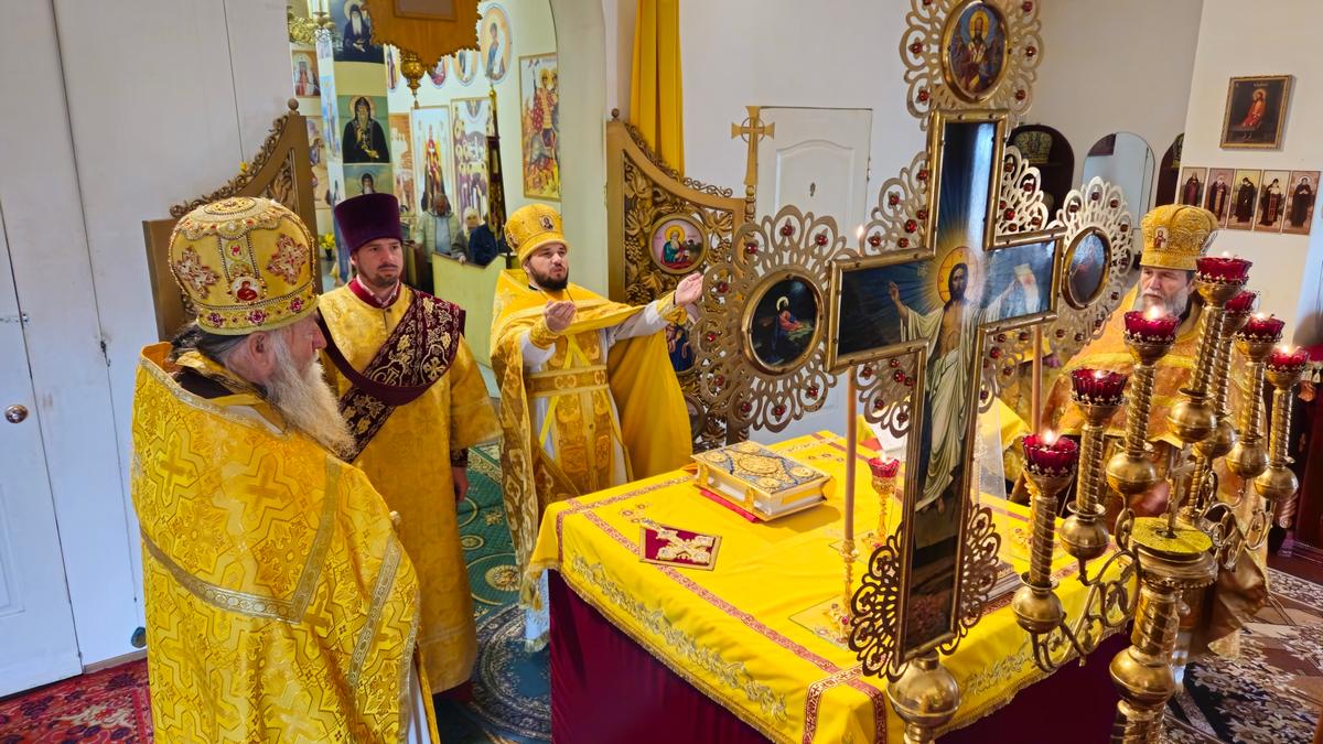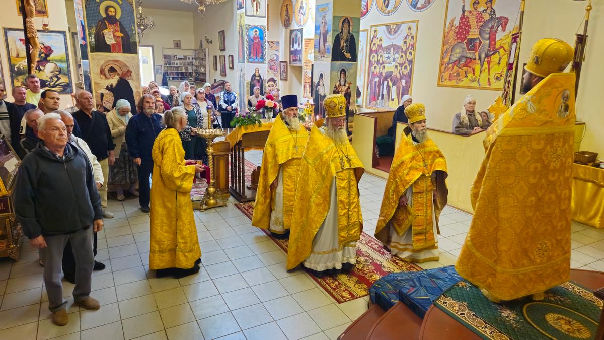 По окончании Литургии священнослужители совершили славление святителю Иоасафу Белгородскому, память которого совершается в этот день и в честь которого освящен трапезный храм прихода.