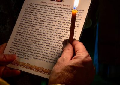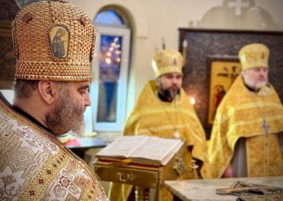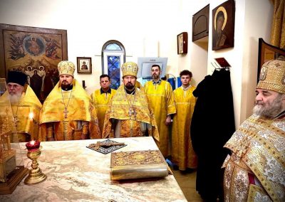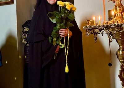 После Литургии совершили славление преподобному, благочинный обратился к общине с поздравительным словом и гостям была предложена праздничная трапеза.