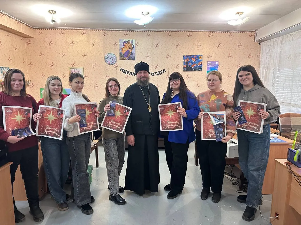Отец Димитрий вручил сотрудникам центра праздничный выпуск просветительской газеты православной московской редакции «ФОМА» и буклеты «Рождество — Богоявление», подготовленные Синодальным миссионерским отделом РПЦ, распечатанные при поддержке Издательского отдела Луганской Епархии.