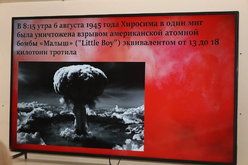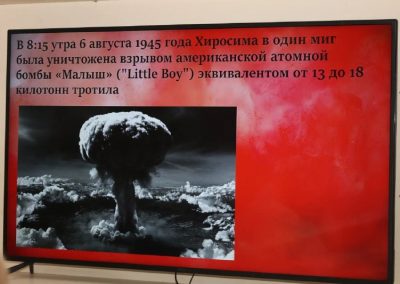 Человечество зажгло первое рукотворное солнце. 6 августа 1945 года, в конце Второй Мировой Войны, самой страшной войны в истории, человечество впервые увидело оружие новой эпохи – оружие, которое может уничтожать целые континенты. Первым на данную тему выступил Михаил Дьяконов, почетный работник образования ЛНР, абсолютный победитель конкурса «Учитель года» 2019, магистр истории, участник СВО. «Первый ядерный взрыв на самом деле состоялся 16 июля 1945 года на территории США. Была испытана первая в мире ядерная бомба, на кануне испытания была угроза того, что взрыв запустит цепную реакцию, которая вызовет возгорание всей атмосферы и приведет к уничтожению всего живого на земле. А с 1945 года и по нынешний день на земле было взорвано более 2000 тысяч различных ядерных зарядов». На сегодняшний день, по данным Стокгольмского института (SIPRI), в мире 12 000 ядерных зарядов, из них более 9 500 готовы к применению. Следующим на данную тему выступал Константин Деревянко – кандидат философских наук, доцент. «Человек умирает в любой момент, сколько кому отмерено прожить неизвестно. Душа отделяется от бренного тела, время для нее застывает, а история человечества продолжается, сколько она будет продолжаться мы не знаем. А к последнему суду каждая душа прибывает одновременно, и Господь говорит: в чем застану, в том и сужу».