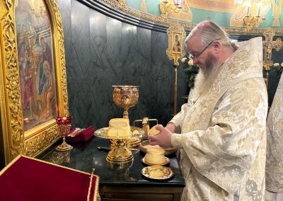 Во время службы была вознесена сугубая молитва о Святой Руси и о скорейшем освобождении из плена митрополита Святогорского Арсения. Перед Причастием мирян с проникновенной проповедью к молящимся обратился протоиерей Георгий Данильчук.