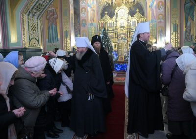 В завершение митрополит Владимир поблагодарил сослужившего владыку Амвросия и всех участников богослужения, пожелав всем радости, крепости сил и здравия. Он также напомнил о продолжающихся праздничных событиях — архиерейских рождественских ёлках для детей, проводимых в Донецком театре оперы и балета, где юные прихожане смогут возрадоваться великому празднику.
