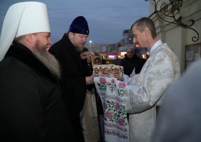 Под праздничный перезвон колоколов, с традиционным караваем и цветами, приходская община радостно встретила высоких гостей: митрополита Луганского и Алчевского Пантелеимона и правящего архиерея — митрополита Донецкого и Мариупольского Владимира.