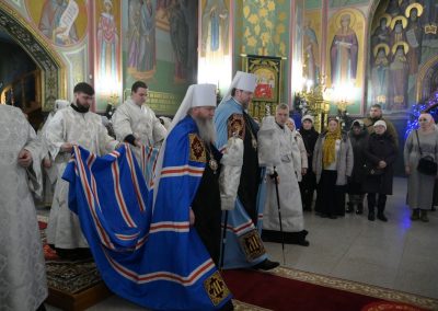 Литургию завершили торжественные чинопоследования: славление праздника и возглашение уставного многолетия.