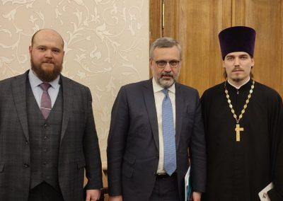 В начале встречи В.Р. Легойда обратил внимание коллег на выступления Святейшего Патриарха Кирилла на пленарном заседании XIV Рождественских Парламентских встреч в Совете Федерации ФС РФ и на пленарном заседании XXXIV Международных Рождественских образовательных чтений в Государственном Кремлевском дворце.