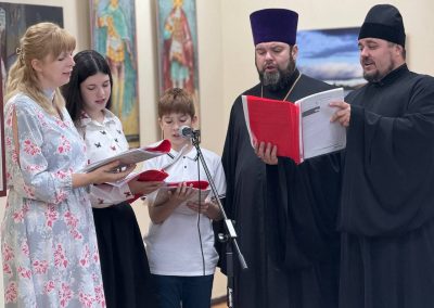 Также в преддверии праздника Успения Пресвятой Богородицы церковными песнопениями, по благословению владыки, гостей поздравил православный ансамбль семьи клирика Петро-Павловского кафедрального собора, протоиерея Александра Шлимовича.