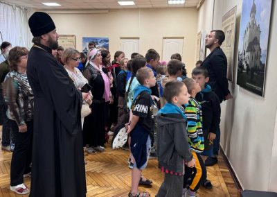 Заведующий отделом экспозиционно-выставочной работы музея-заповедника Ковалёв Виталий Сергеевич, который и привез выставку, провел гостям экскурсию и рассказал о музее и его святынях.