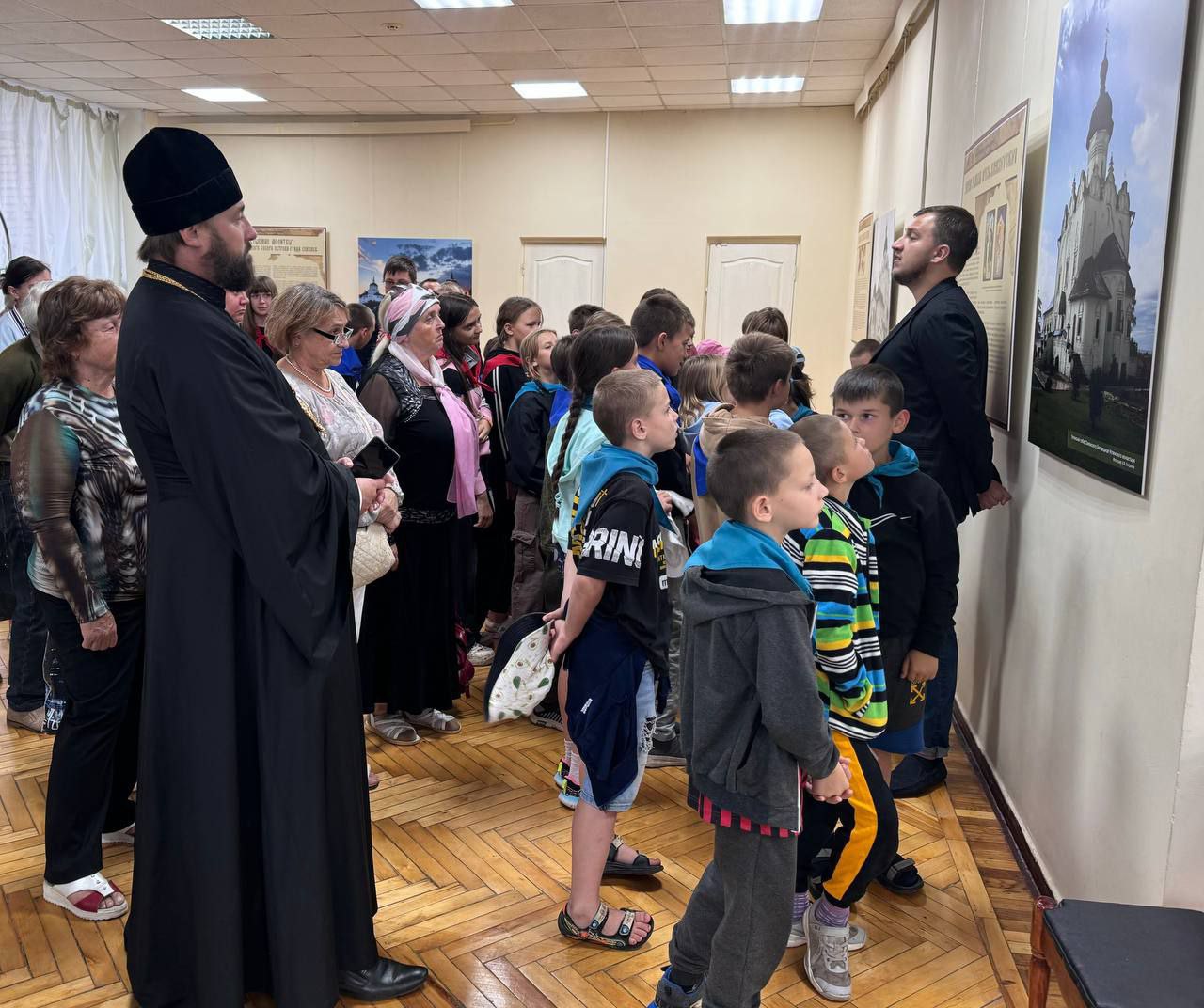 Заведующий отделом экспозиционно-выставочной работы музея-заповедника Ковалёв Виталий Сергеевич, который и привез выставку, провел гостям экскурсию и рассказал о музее и его святынях.